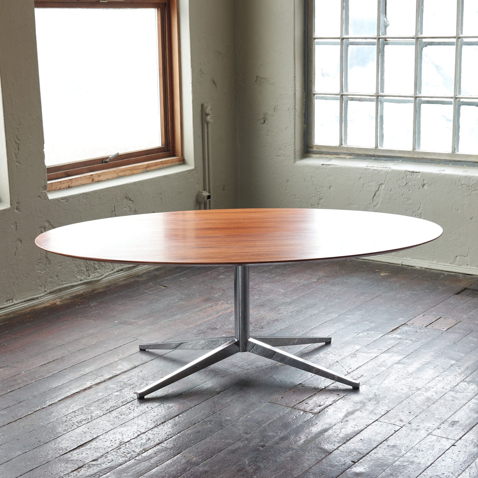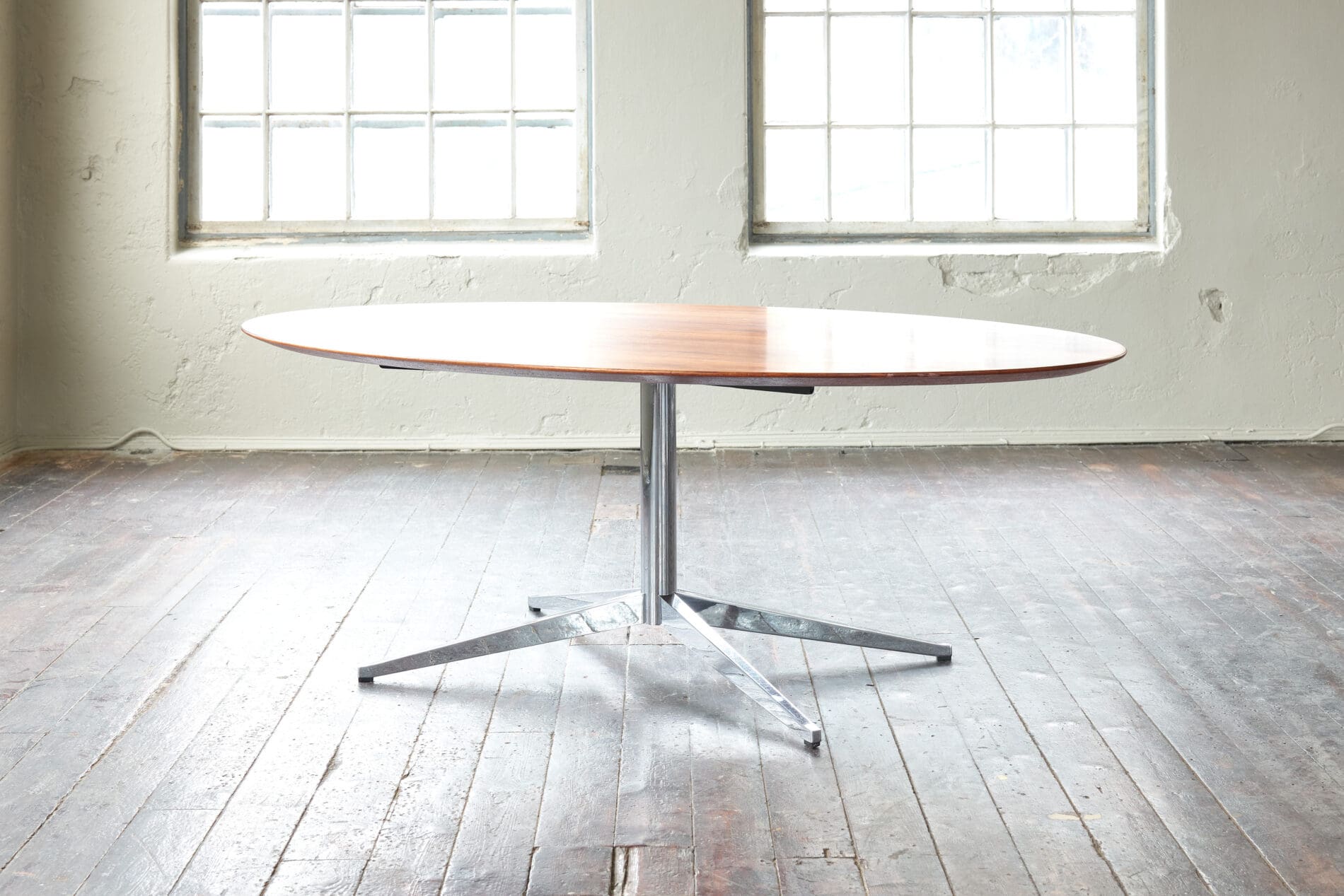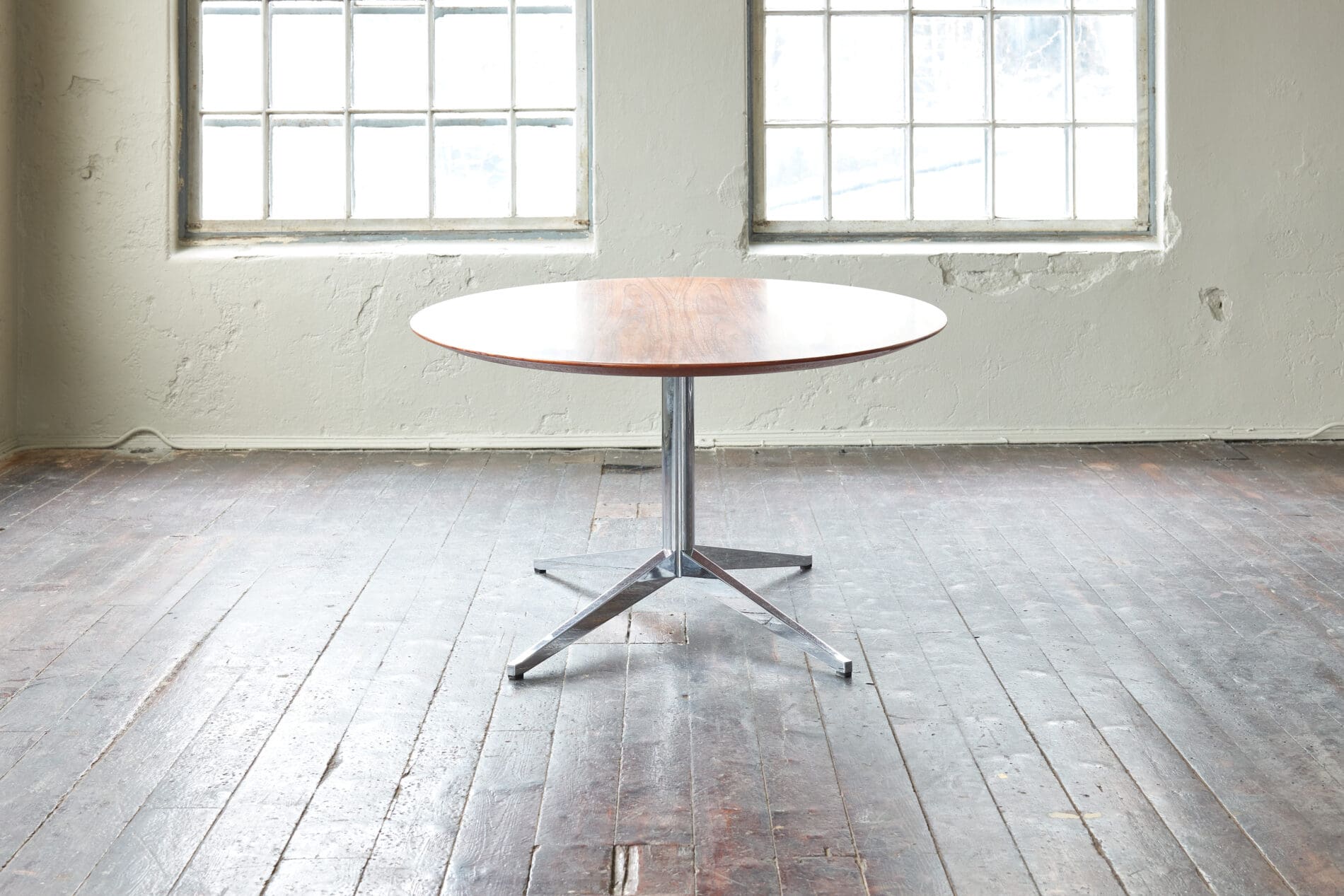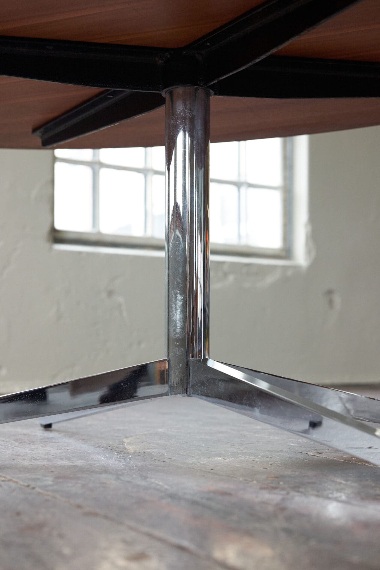 Walnut table top on a chromed metal frame, The top has been refinished beautifully.