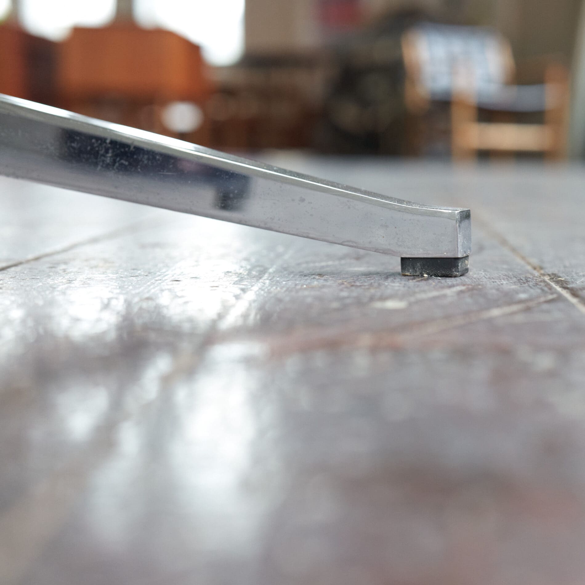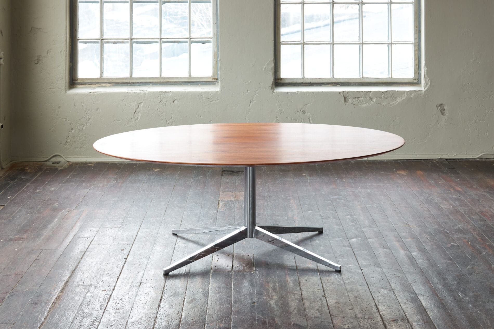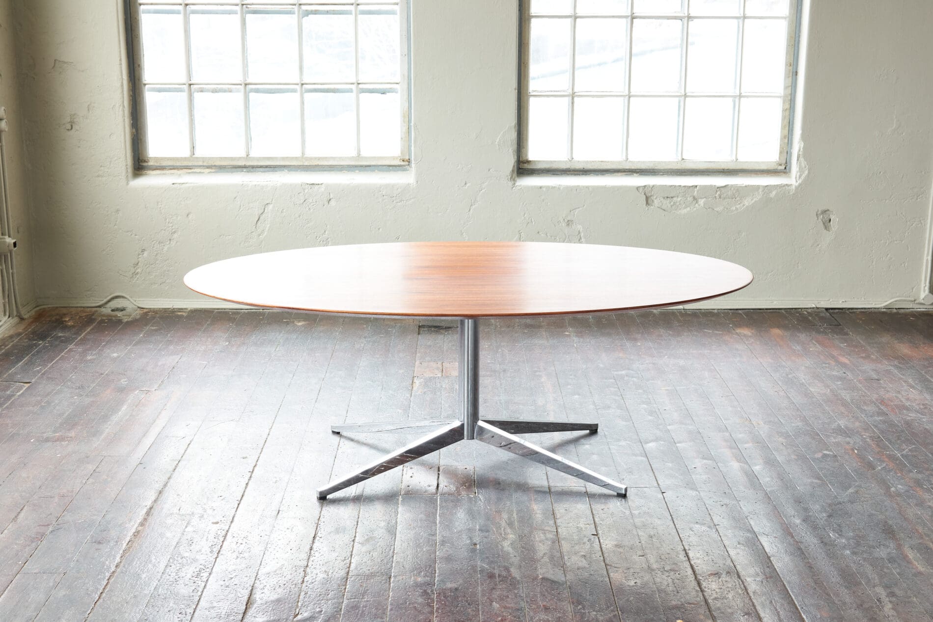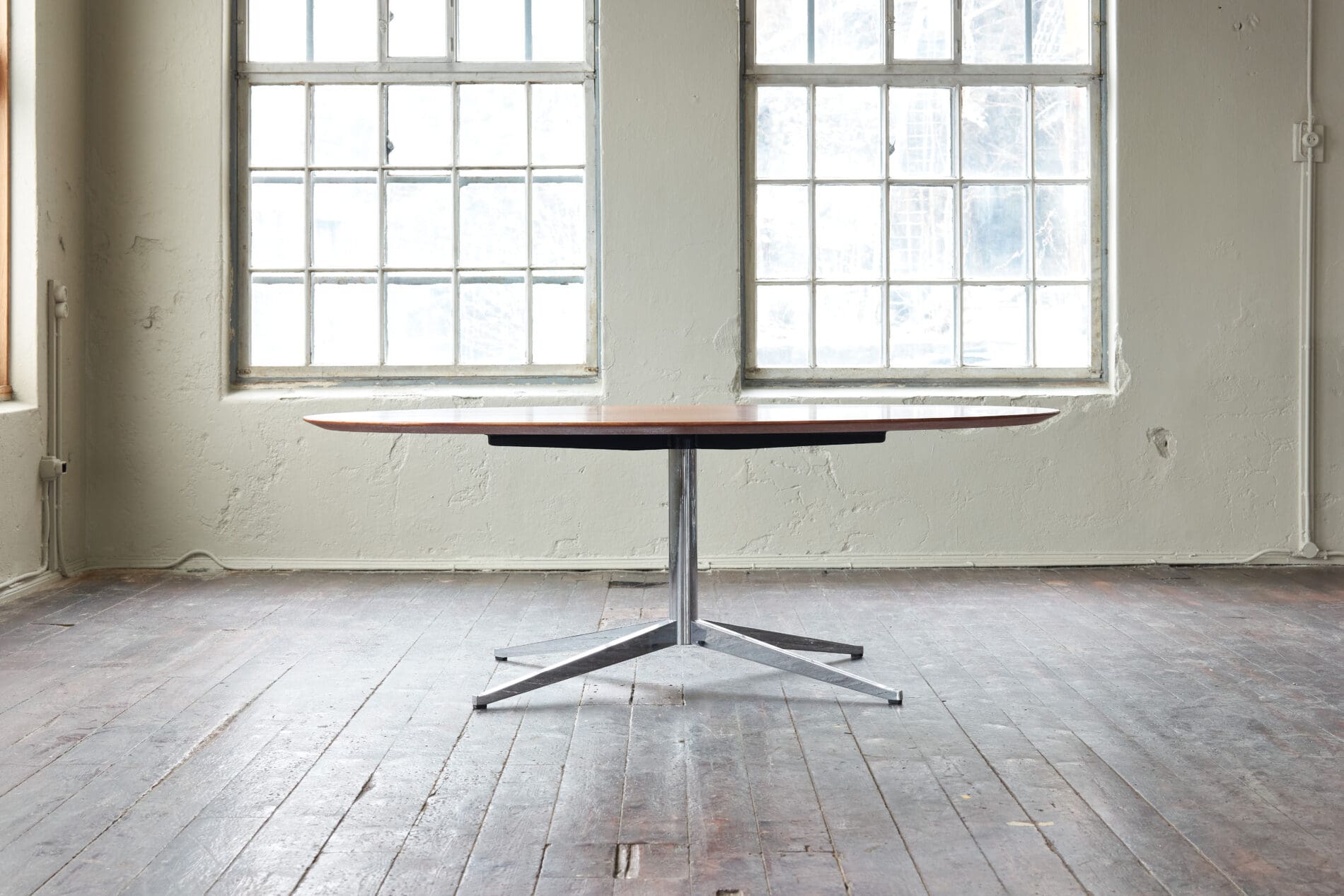 Walnut table top on a chromed metal frame, The top has been refinished beautifully.