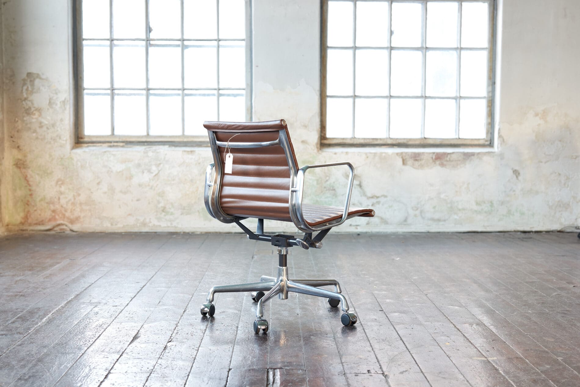 This is an Eames Aluminum Group Management Desk Chair, model EA335, initially designed by Ray and Charles Eames for Herman Miller in 1958.