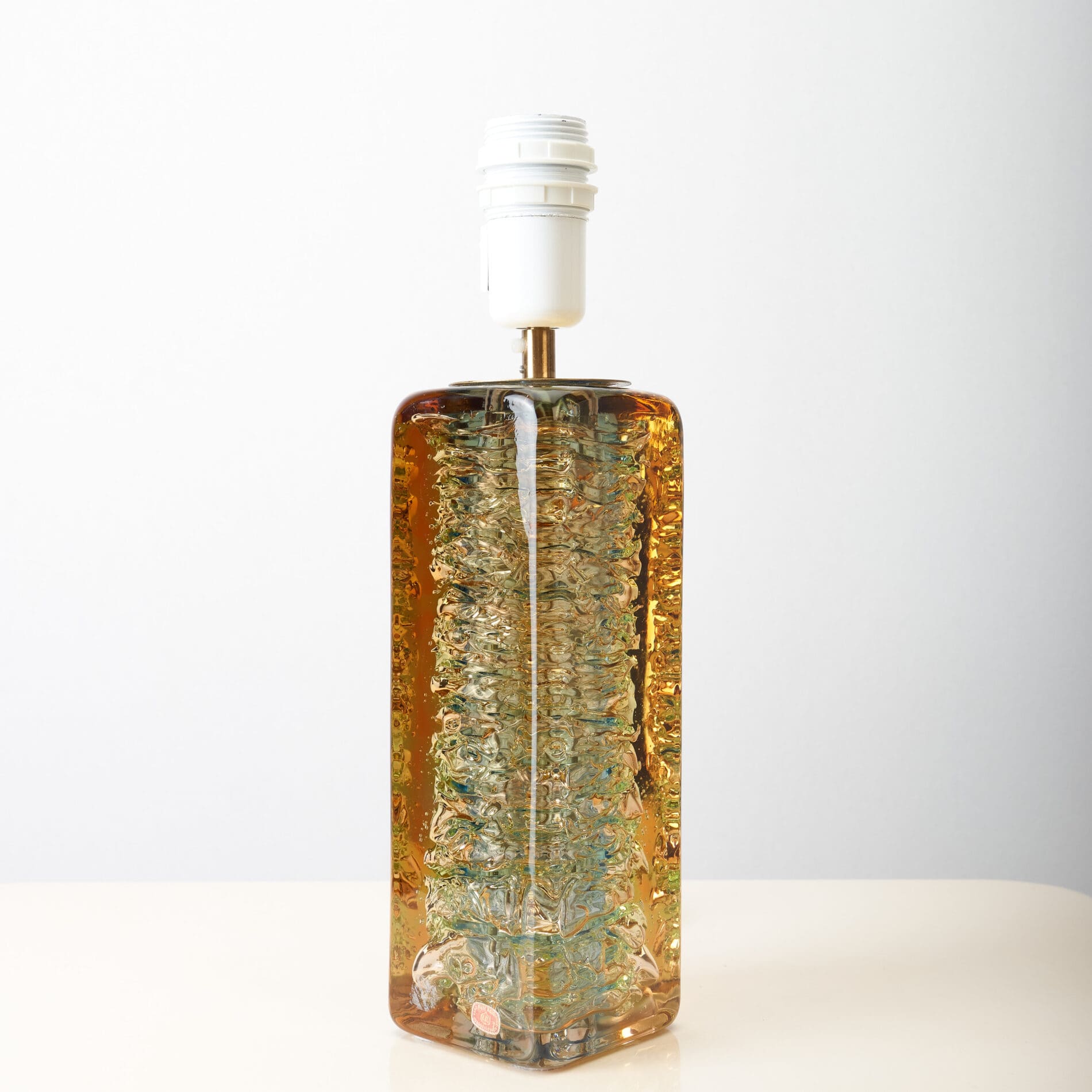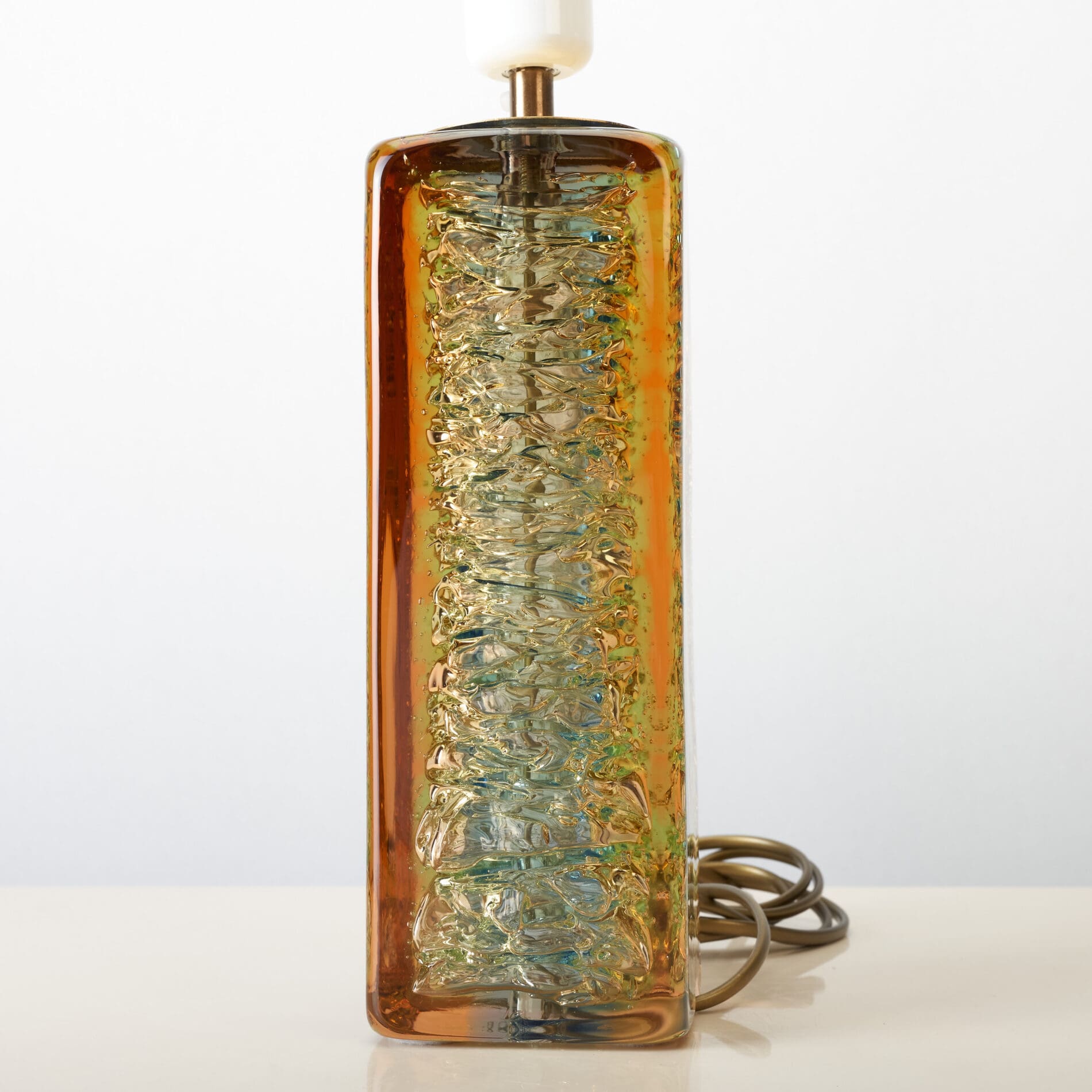 Amber color with tones of green and blue.