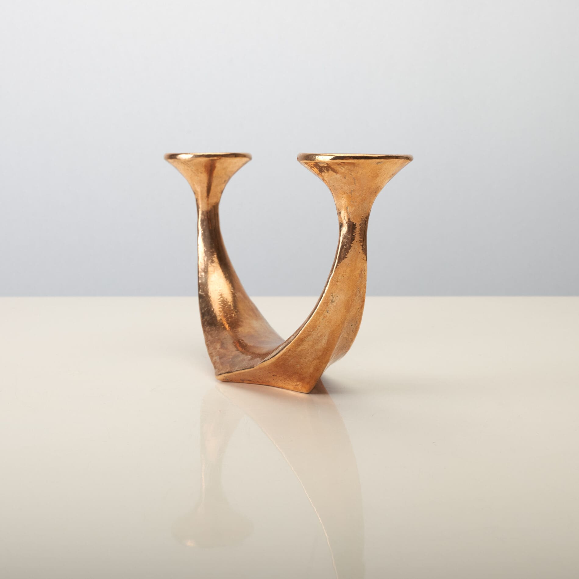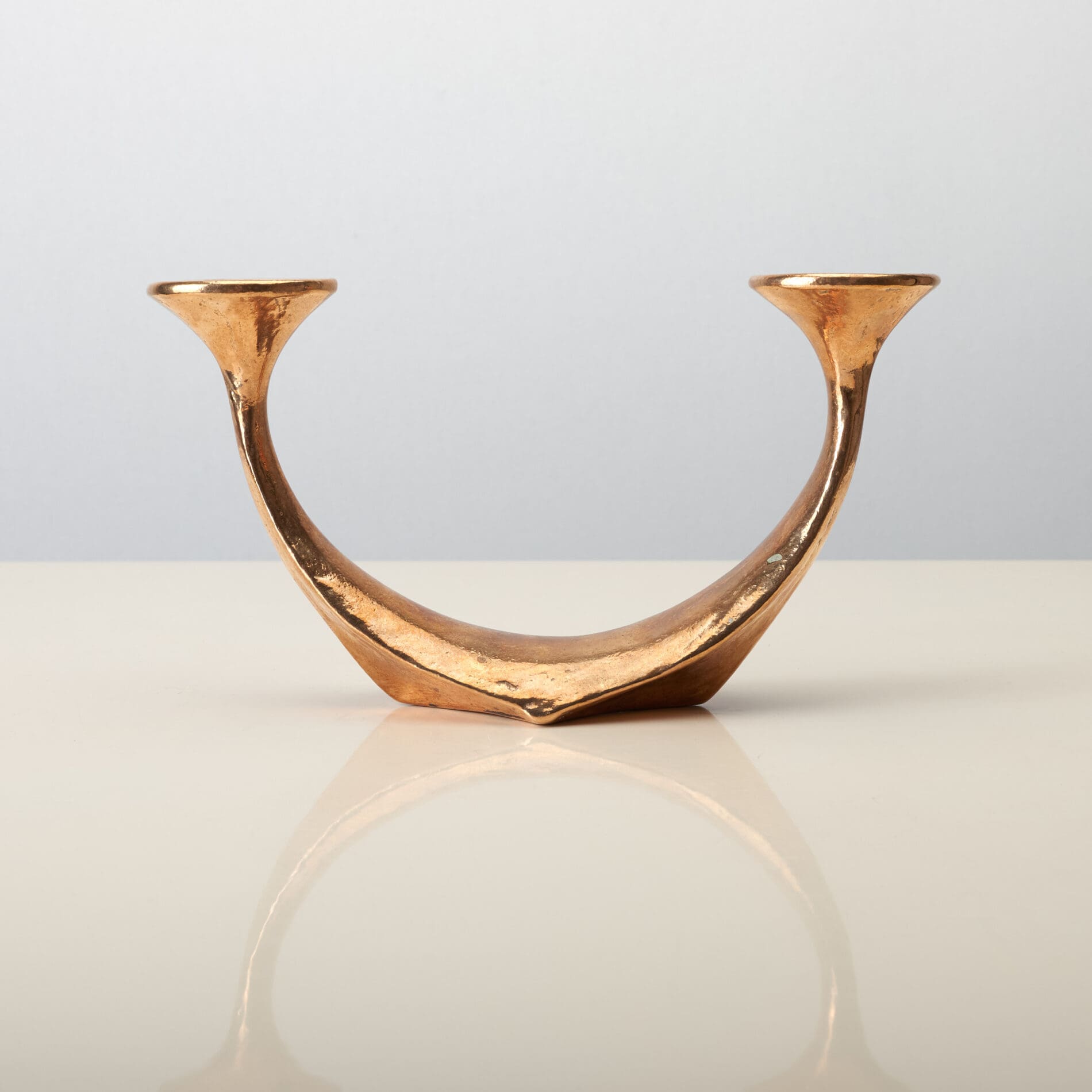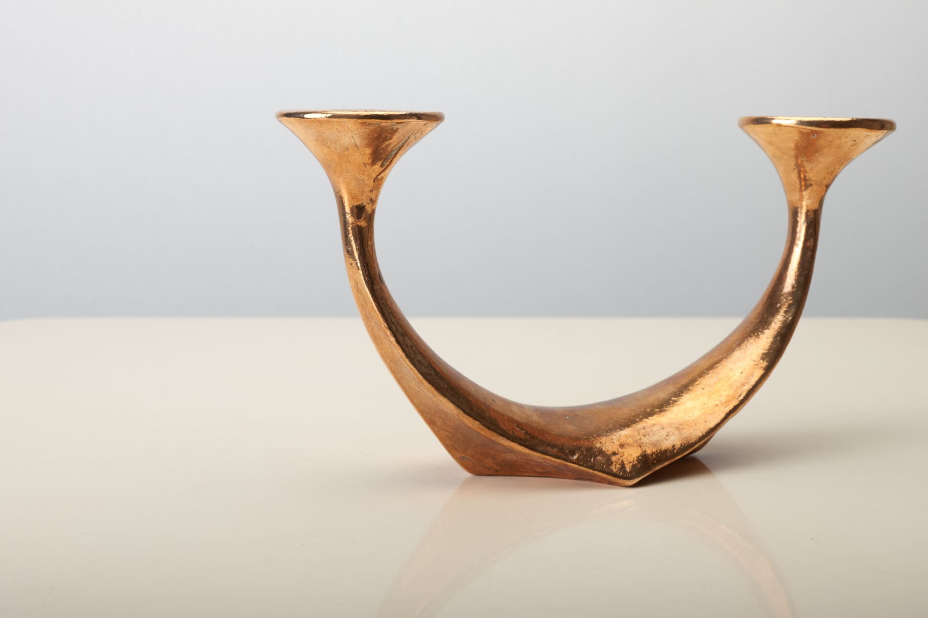Elegant two armed candle holder by Michael Harjes, 60s/70s. Made of solid and heavy brass.  Can hold standard size candles /diameter 20-22 mm/.