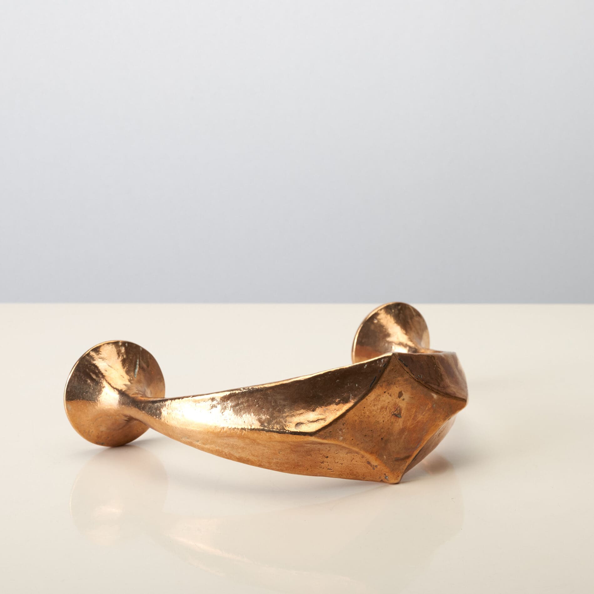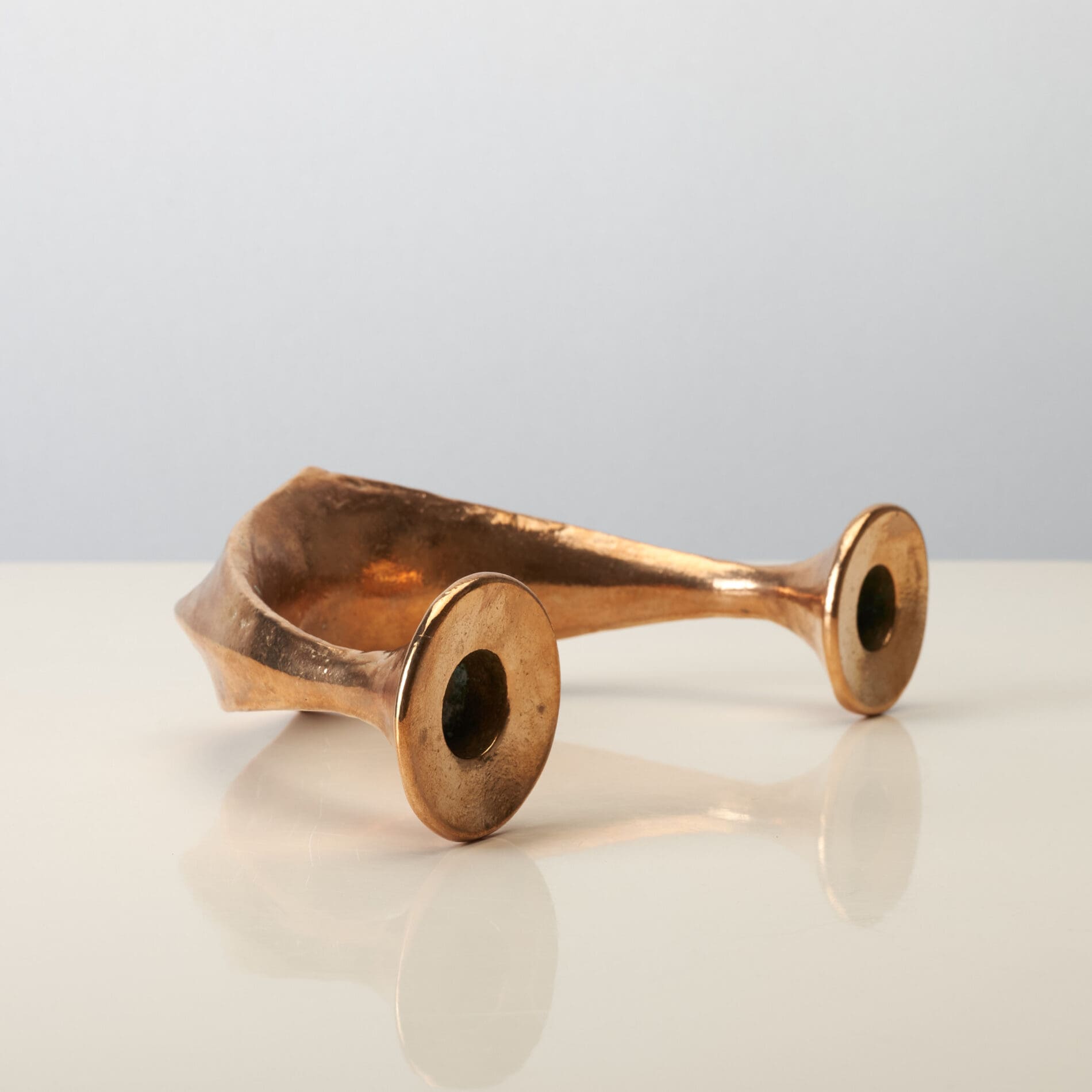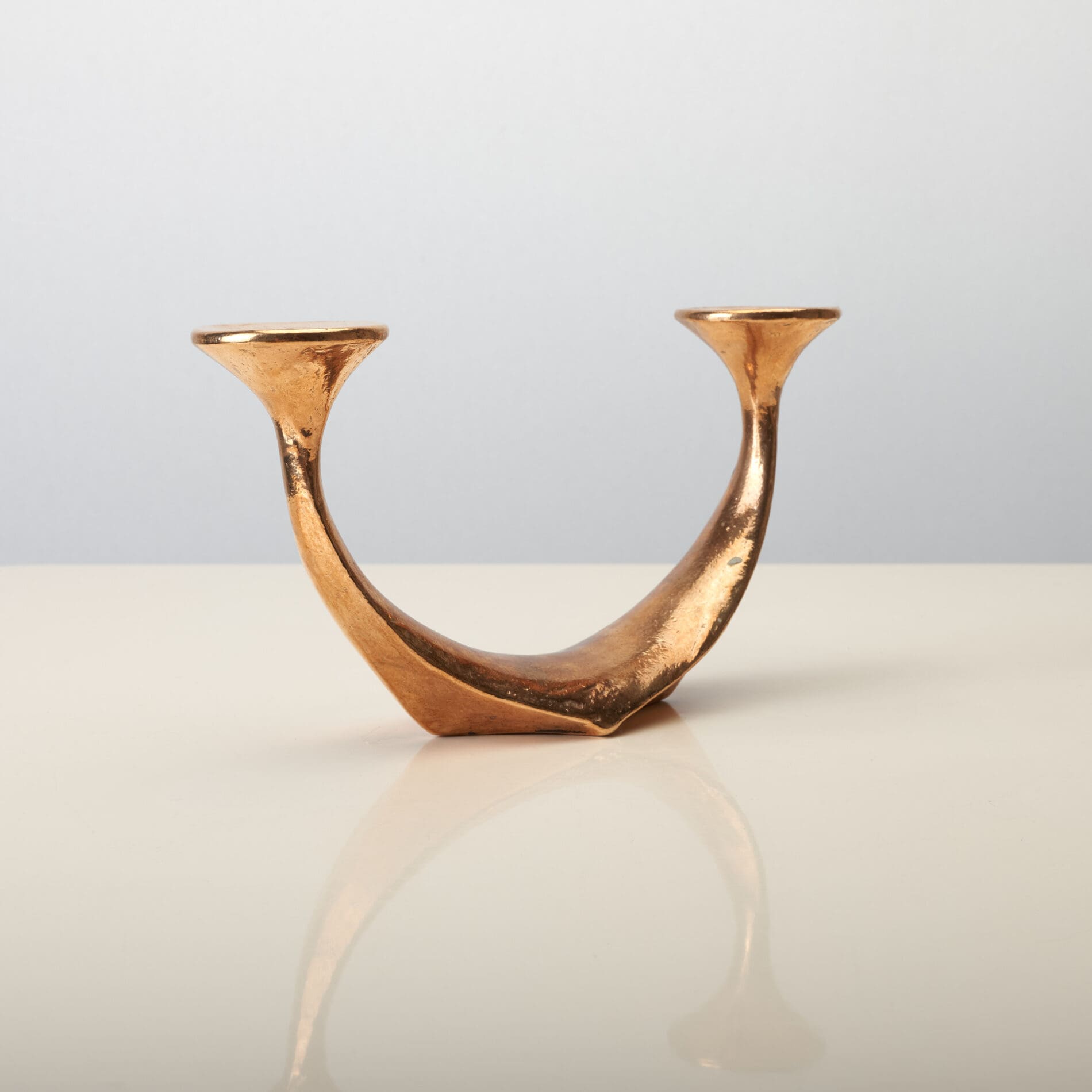 Elegant two armed candle holder by Michael Harjes, 60s/70s. Made of solid and heavy brass.  Can hold standard size candles /diameter 20-22 mm/.