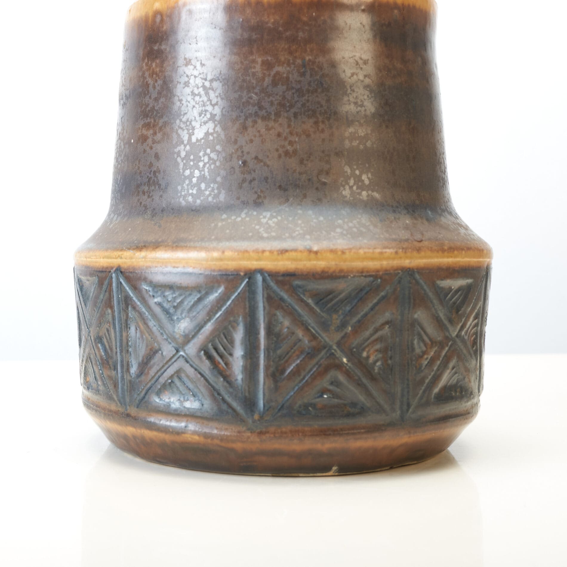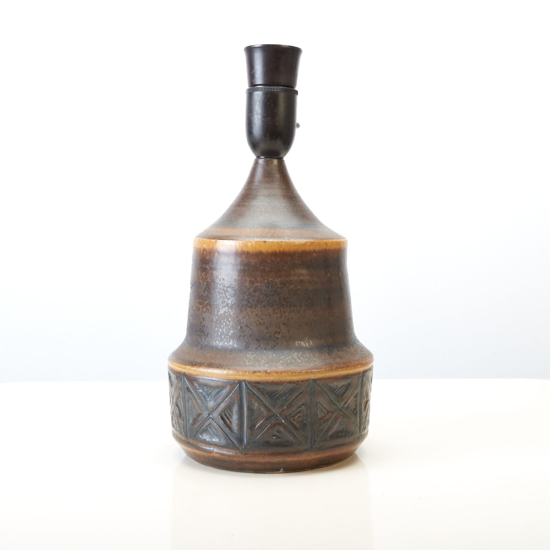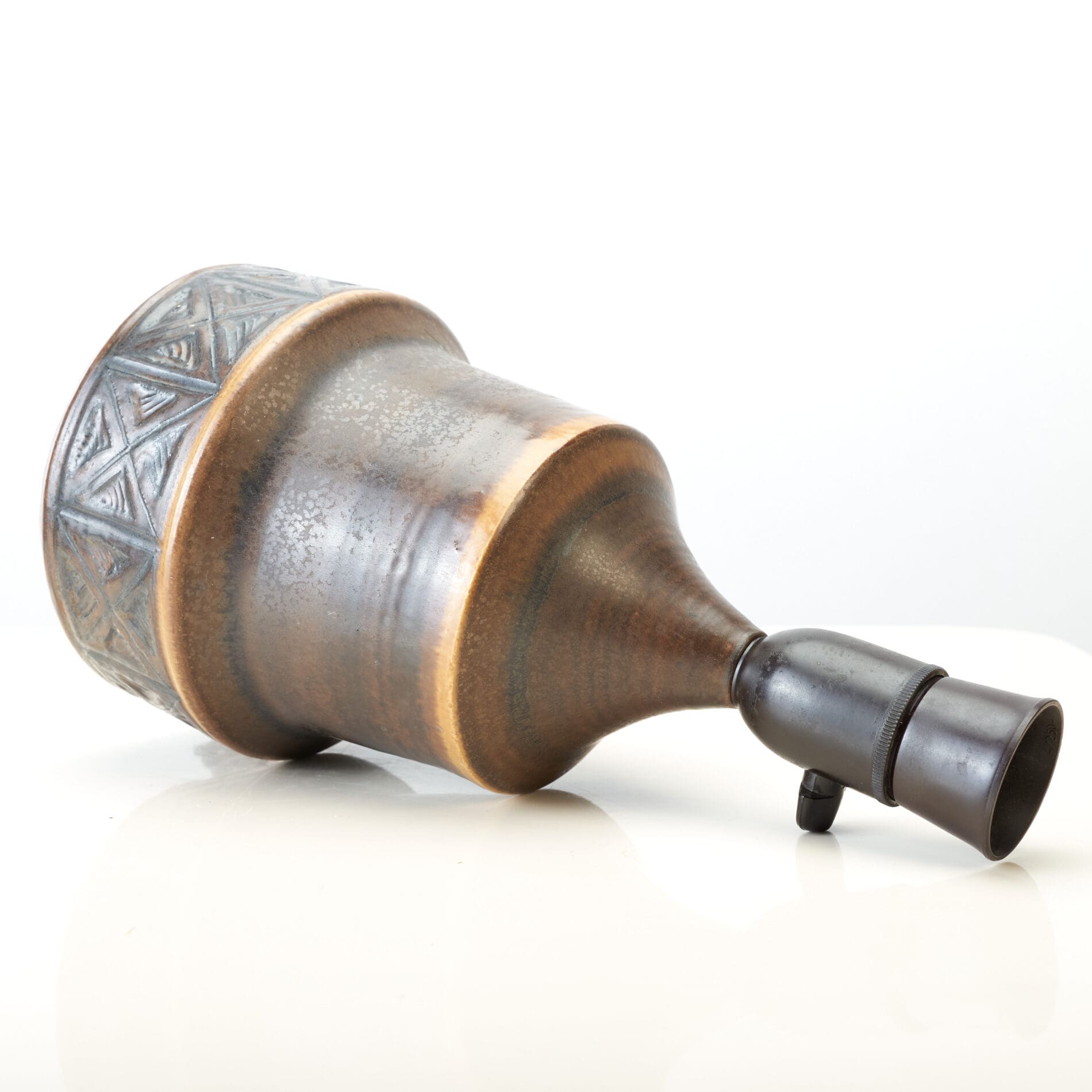 Scarce lamp example of Mjelve´s strongly modeled form with carved non-figurative decoration. This example was one of three sourced from the same estate.